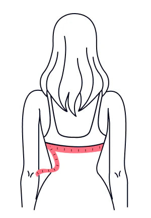 Align the tape around your body at ribcage level, directly under the bust, keeping the tape parallel to the floor. Tape should feel snug but not tight around the body. Record your measurement.
